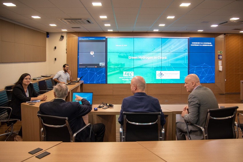 O Presidente da Federação das Indústrias do Estado do Ceará (FIEC), Ricardo Cavalcante, o Gerente do Observatório da Indústria, Guilherme Muchale, a Gerente do Centro Internacional de Negócios da (CIN), Karina Frota e o Consultor de Energia da FIEC, Jurandir Picanço, receberam, no dia 15 de fevereiro, a visita dos executivos da Transhydrogen Alliance, Mark McHugh e Paul Baan.