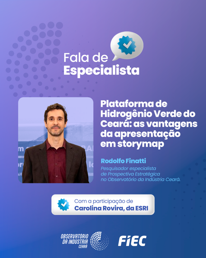 Além disso, essa primeira aproximação com a ferramenta e a necessidade de soluções criativas para cada uma das formas de apresentação buscadas pela equipe foram viabilizadas com o apoio direto da analista Carolina Rovira, do time de sucesso do cliente da ESRI, que destaca: “A apresentação do Hub do Hidrogênio Verde foi um ótimo exemplo de como o ArcGIS StoryMaps e o ArcGIS Online podem ser explorados de forma criativa e eficiente. O resultado trouxe mapas interativos, de fácil compreensão, aliados a uma organização que deixou a navegação fluida e envolvente. Além disso, a equipe da FIEC demonstrou abertura a novas ideias e entusiasmo em aprender, o que enriqueceu ainda mais o trabalho. Posso dizer que este é um excelente caso de como o storymap pode gerar resultados criativos e relevantes no Brasil”.