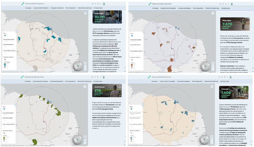 Recentemente, o Observatório da Indústria Ceará, em parceria com a Agência de Desenvolvimento do Ceará (ADECE), o Governo do Estado do Ceará e o Complexo Industrial e Portuário do Pecém (CIPP), lançou sua primeira plataforma no formato de storymap. Esse modelo de apresentação tem ganhado atenção pela simplicidade e objetividade na comunicação, associadas ao potencial da visualização espacial dos dados.