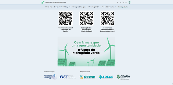 Figura 6. Na última página da plataforma, os QR Codes direcionam para os parceiros que participaram da sua construção: Complexo Industrial e Portuário do Pecém (CIPP), Federação das Indústrias do Estado do Ceará (FIEC) e Secretaria de Desenvolvimento Econômico do Ceará.